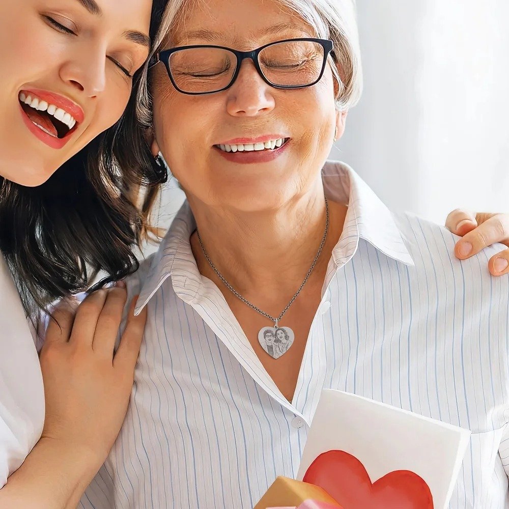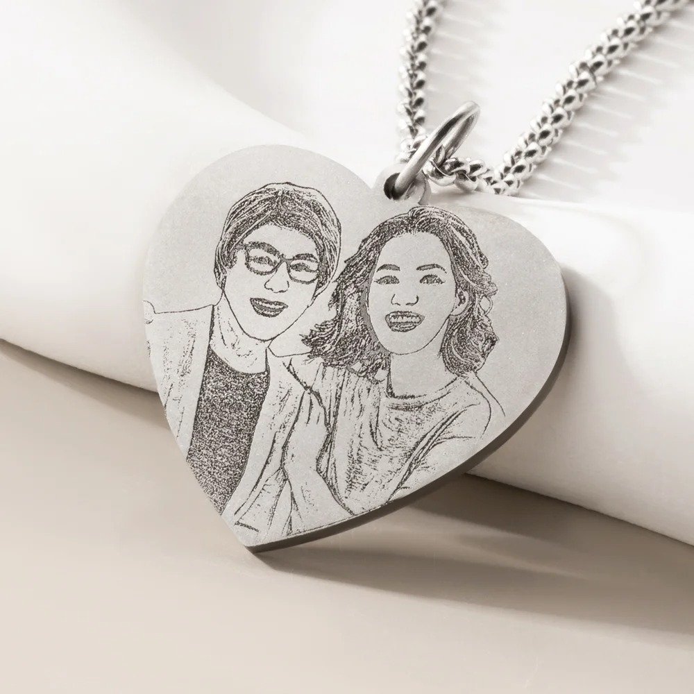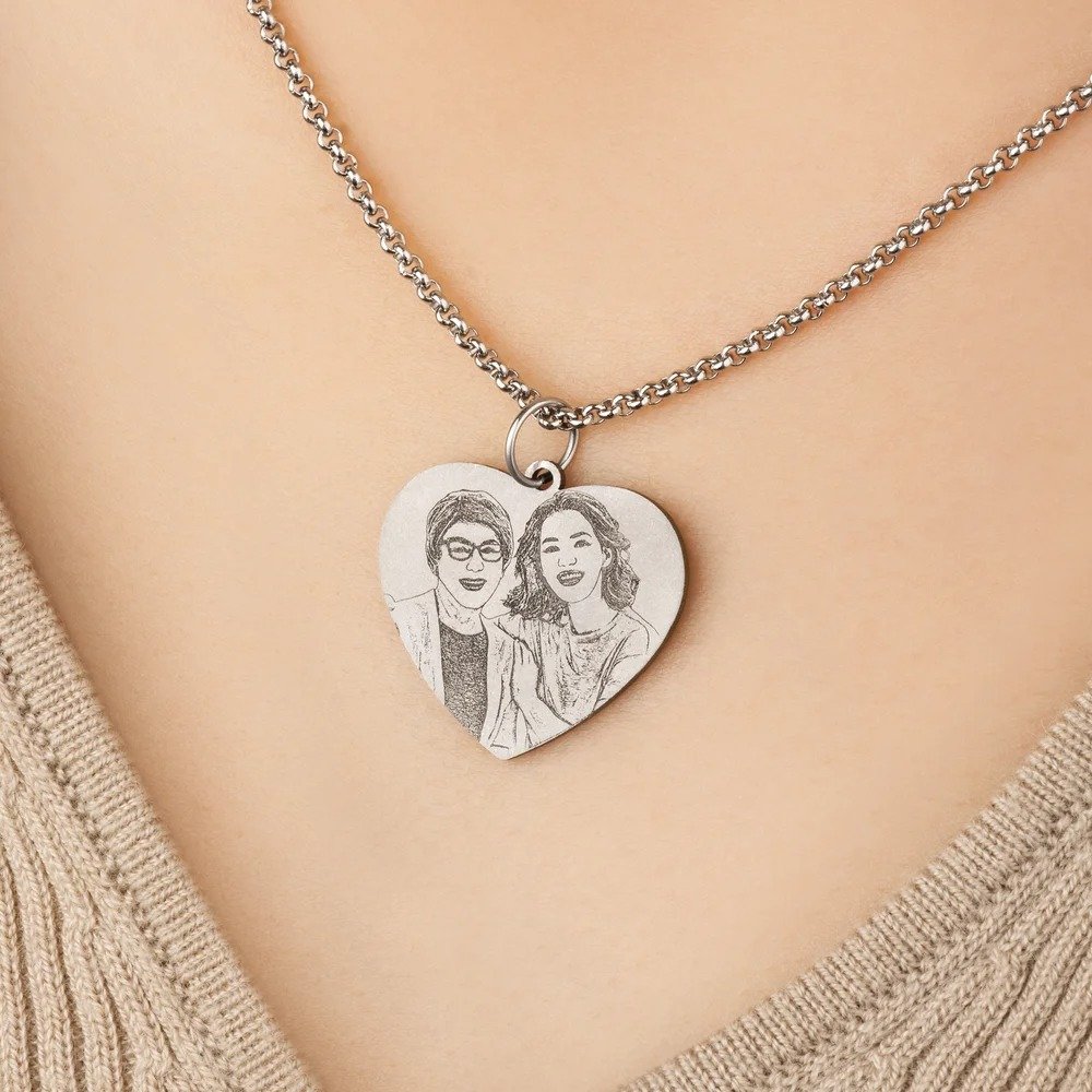 Personalized Engraved Heart Photo Sterling Silver Necklace with Text Mother's Day Valentine's Day Anniversary Gift for Family Friend