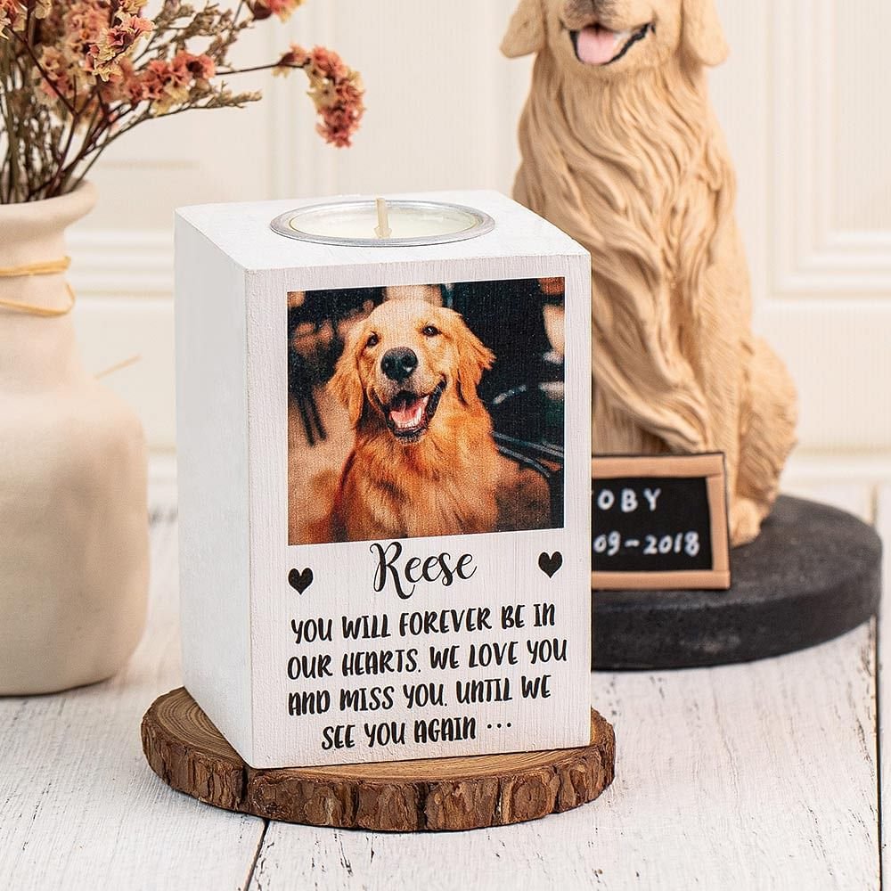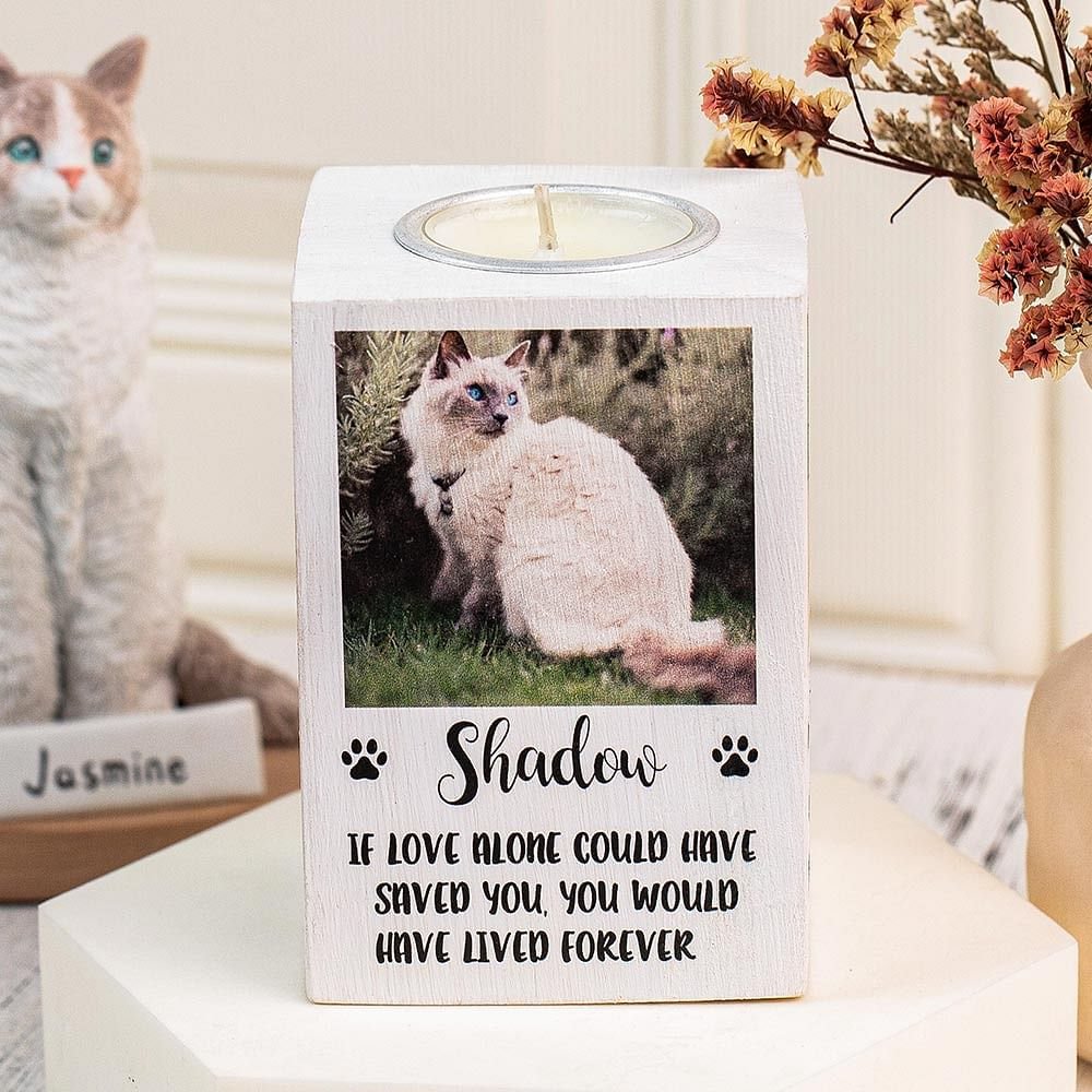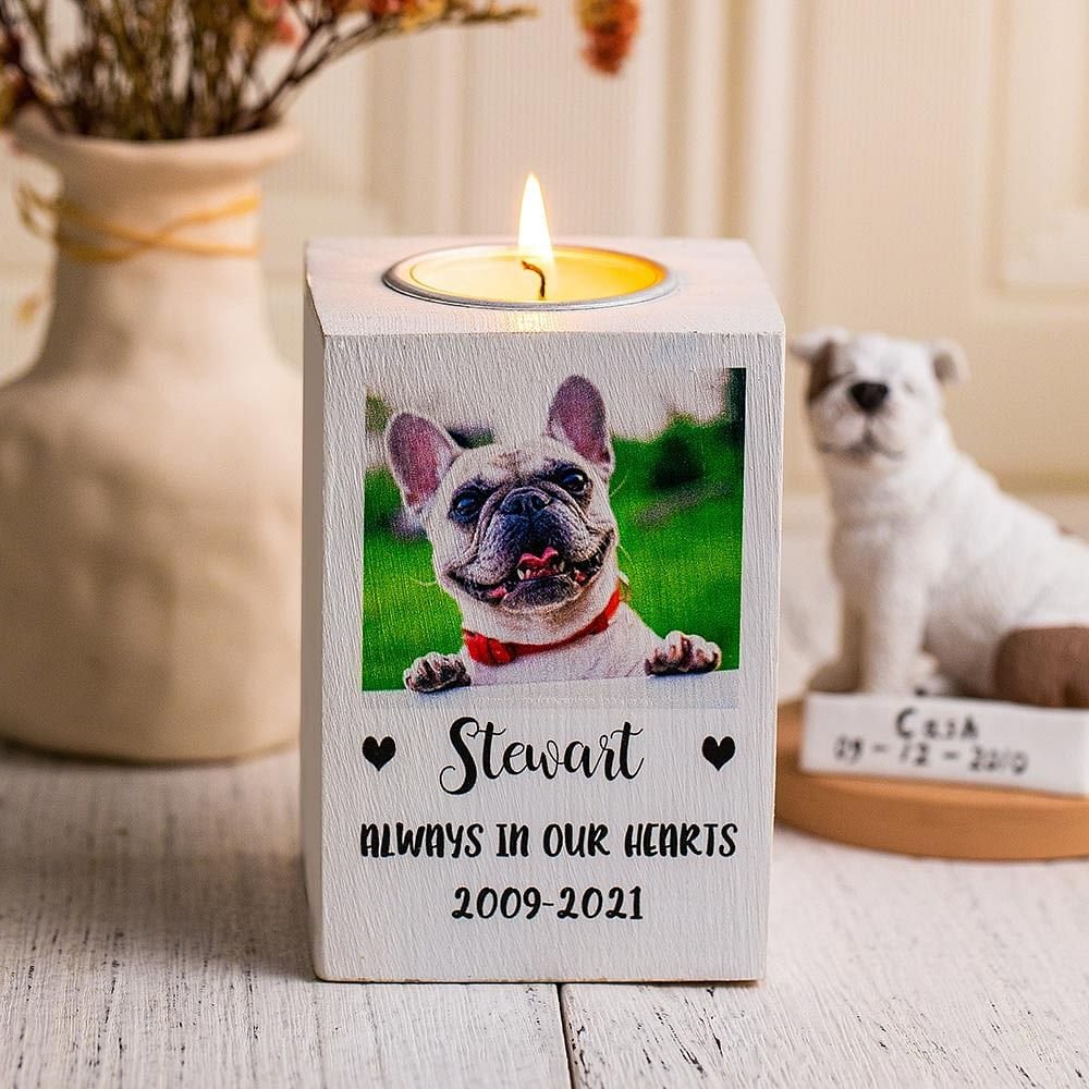 Personalized Dog Cat Photo Candle Tealight Holder with Name and Text Memorial Gift for Pet Lover